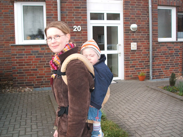 Ich habe seit heute den Ergo Carrier, übrigens, und Timo und ich sind begeistert! Super zu handhaben, leicht rein- und rauszusetzen, auch mal eben auf der Straße, und Timo liebt die Rückentrage, war total happy. Und ich muss sagen, der Tragekomfort ist mindestens so gut wie im Tuch!